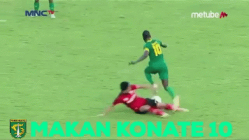 Makan Konate showcases his football skills and takes a shot during a Liga 1 match.