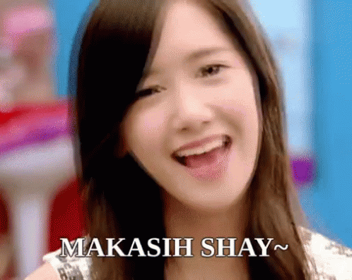 Yoona from SNSD smiles and winks, with the Indonesian text 'Makasih Shay~' overlaid on the screen.