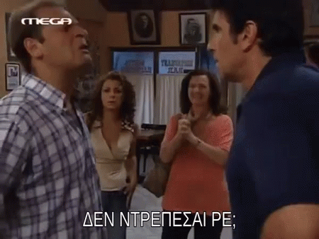 Makis Kotsampasis from Eutuxismenoi Mazi confronts others, exclaiming 'Aren't you ashamed?' in a heated moment.