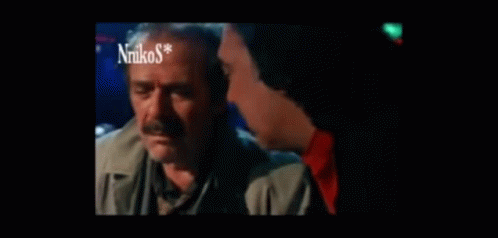 Makis Tsetsenoglou, a man with a mustache, in a dark setting, engaged in conversation with another man.