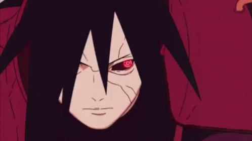 Madara Uchiha from Naruto with intense red eyes, featured in a clip by Максим.