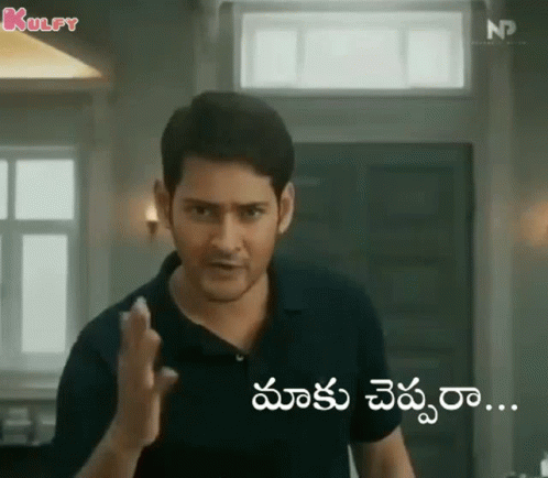Mahesh Babu makes a stern face, gesturing with his hand, with the Telugu caption 'Did you tell us...?'