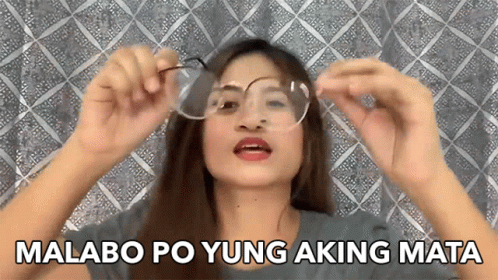 Sai Datinguinoo demonstrates her blurry vision, putting on glasses while stating 'My eyesight is blurry'.