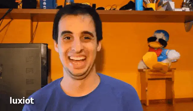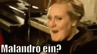 Woman's hilarious reaction to 'Malandro ein?' text, pointing at her nose and laughing.