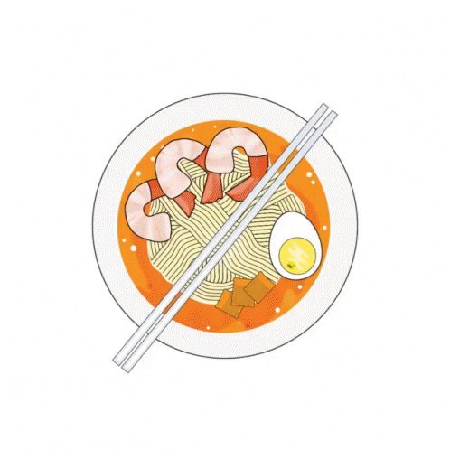 A close-up of a delicious bowl of Malaysian laksa noodles, featuring shrimp, an egg, and chopsticks.