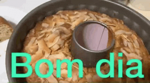 A delicious bundt cake with "Bom dia" written on it, possibly a homemade treat by Mama.