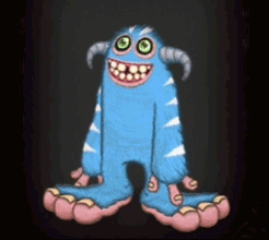 Mammott-rare from My Singing Monsters, a blue furry monster with horns, shows off its big smile.