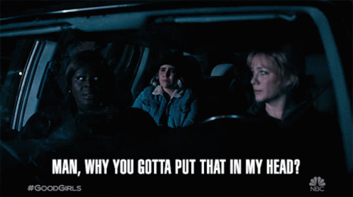 Mae Whitman, Christina Hendricks, and Retta in Good Girls, reacting to a comment in the car.