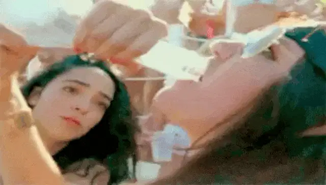Manelyk from Super Shore in a bikini, cheerfully saying 'Todo bien, todo fain, fain, very good, very good'.