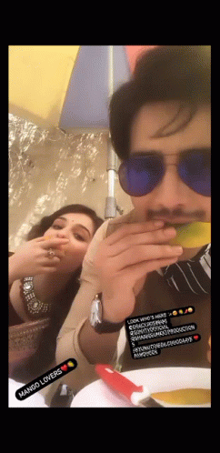 Sonal Goswami and a man enjoy eating fresh mangoes, celebrating their love for the fruit.