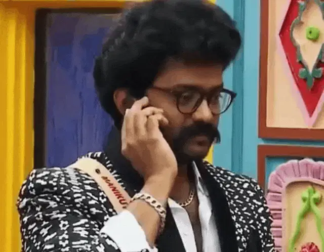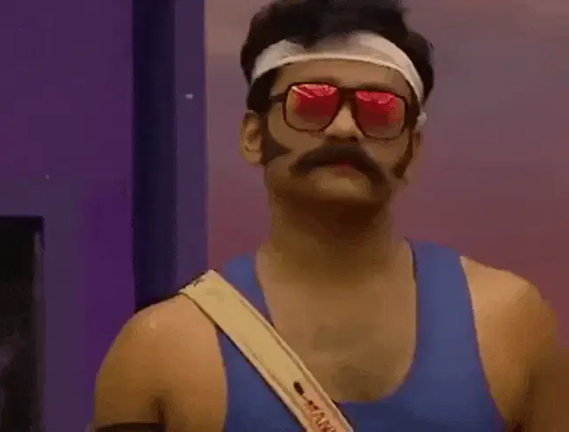 Manikuttan reacts with a 'funny heart attack' gesture during a lighthearted moment on Bigg Boss Malayalam.