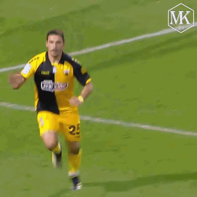Petros Mantalos of AEK, wearing number 20, proudly lifts the championship trophy in a stadium.
