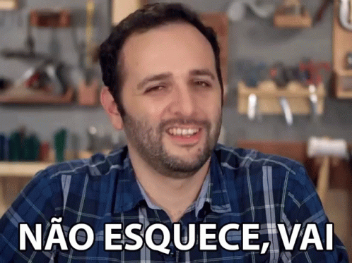 Man from Manual do Mundo smiling with the phrase 'Não Esquece, Vai' (Don't Forget, Come On) overlaid.
