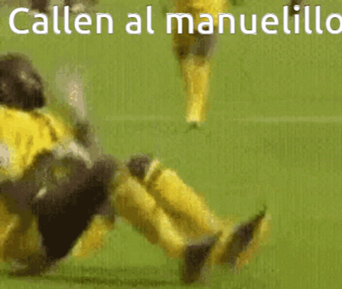 A soccer player in a yellow jersey sits on the field with the text 'Silence Manuelillo' overlaid, referencing Manuelillo.