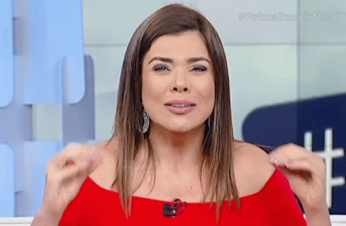 Mara Fofocalizando reacts dramatically to a loud noise, covering her ears in pain on the show.