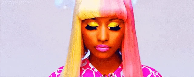 Nicki Minaj from Marajtwt blinking and looking bored with a close-up of her face and black hair.