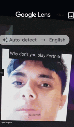 A Google Lens search displaying a man, identified as Marc, with the question 'Why don't you play Fortnite?'.