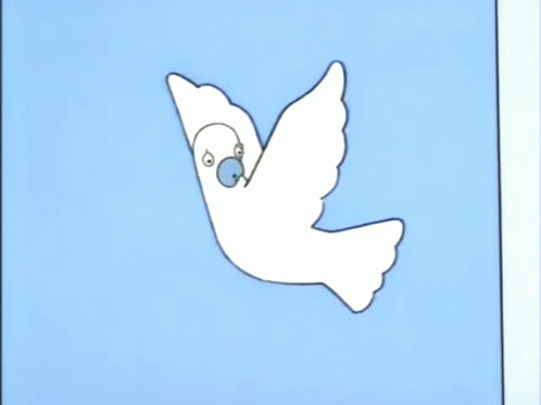 Marge Simpson's message of peace: a white dove transforms, then carries an olive branch.