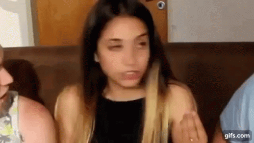 Maria Becerra reacts with a funny face and hand gesture, exclaiming 'Ke' and 'eeeeeee' on a couch.