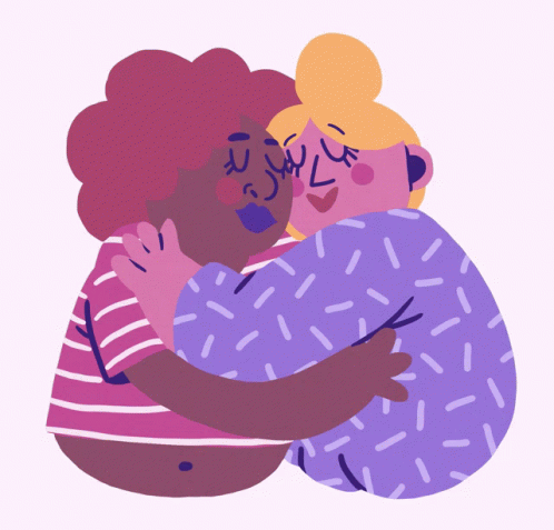 Marie Boiseau and friend share a warm hug, illustrating sisterhood and amitié.