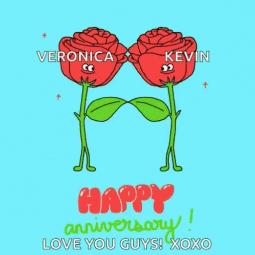 Marisa Crystal's happy anniversary message for Veronica and Kevin, featuring cute cartoon roses.