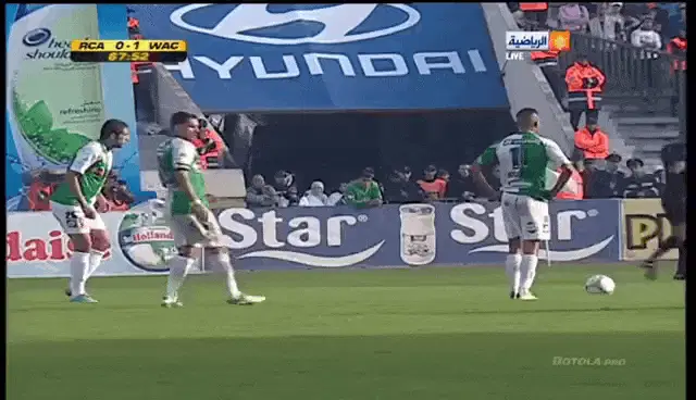 Hassan El Fed, dressed in a yellow and black striped costume, sits in a chair in a barbershop setting.