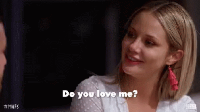 Jessika Power from Married at First Sight Australia asks a man, 'Do you love me?' with a slight smile.