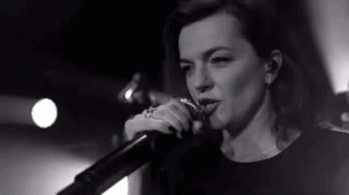 Marta Jandova delivers a powerful performance of 'Die Happy' on stage, captured in striking black and white.