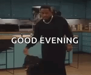 Martin Lawrence in a kitchen, petting a dog and making a 'lip lick' gesture, with 'GOOD EVENING' on screen.