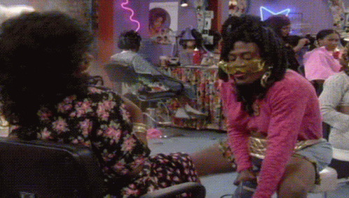 Martin Myras, wearing a pink shirt and gold accessories, gets a pedicure in a lively salon.