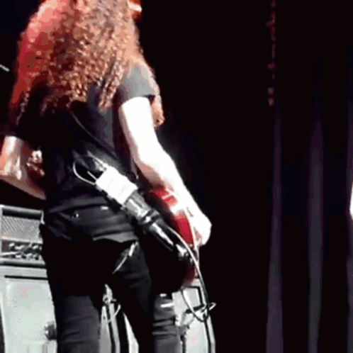 Marty Friedman, the legendary guitarist, performing live on stage with his electric guitar.