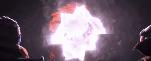 a group of people sitting in front of a large explosion in the dark .