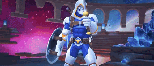 a man in a superhero costume is holding a sword and shield in a video game .