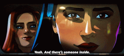 Black Widow (Natasha Romanoff) in Marvel's What If, expressing concern about someone inside.