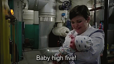Mary Margaret holds baby Neal, initiating a sweet 'baby high five!' in a heartwarming moment from Once Upon A Time.
