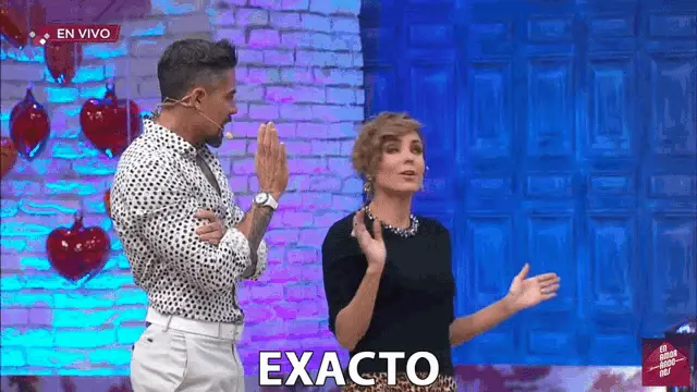 Carmen Munoz and a man on a TV set, with the Spanish caption "MÁS LE VALE" (He Better).