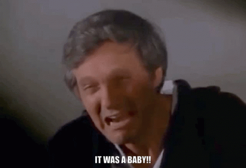 Hawkeye Pierce from M*A*S*H in a moment of intense emotional trauma, exclaiming 'It was a baby!!'