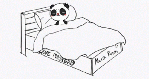 Master D Muzik Panda, a cute animated panda, falls asleep on a bed after a brief countdown.