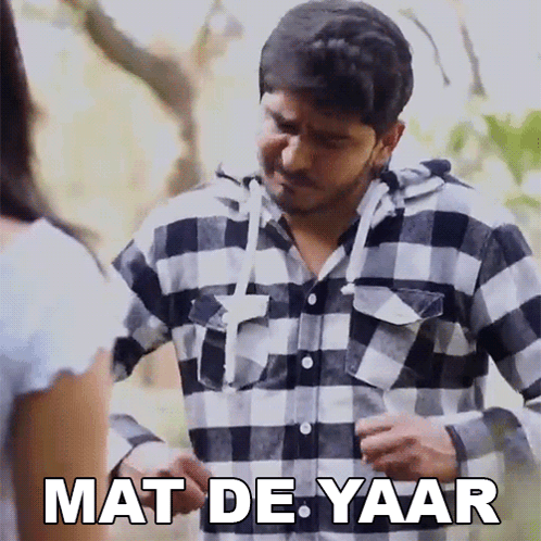 Nishant Chaturvedi in a plaid shirt says 'Mat De Yaar' (Don't give it, man) with an annoyed expression.