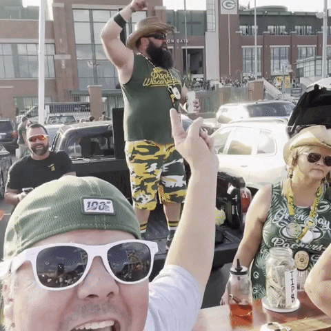Matt Ramage enjoying a lively Green Bay Packers tailgate party with fellow fans.