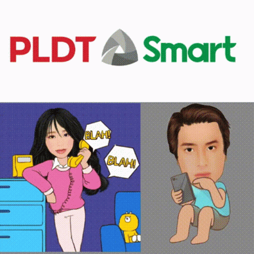 Maymay and Donny in a cartoon ad for PLDT Smart, with Maymay talking on the phone and Donny on his smartphone.