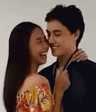Maymay and Edward share a sweet, intimate moment, laughing and almost kissing.