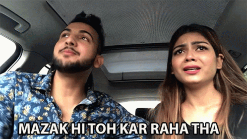 Vinay Thakur in a car, saying 'Mazak Hi Toh Kar Raha Tha' (I was just kidding) to a woman, likely after a prank.