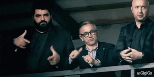 Antonino Cannavacciuolo, Bruno Barbieri, and Joe Bastianich from Masterchef Italia on a balcony.