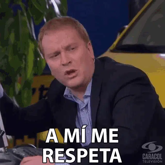 A man reacts with frustration, exclaiming 'Me Colgó' (He hung up on me), implying a rude disconnection.