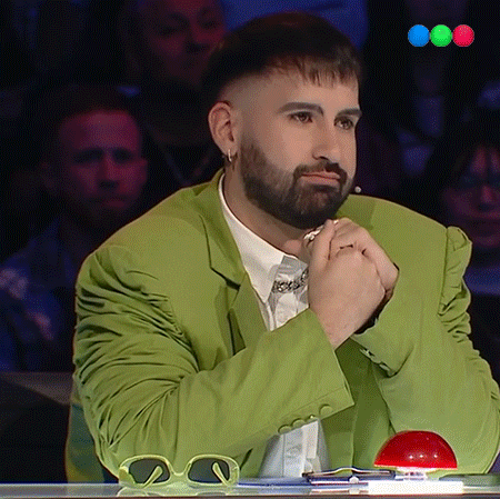 Emir Abdul reacts with goosebumps, clapping and looking at his wrist, during an incredible moment on Got Talent Argentina.