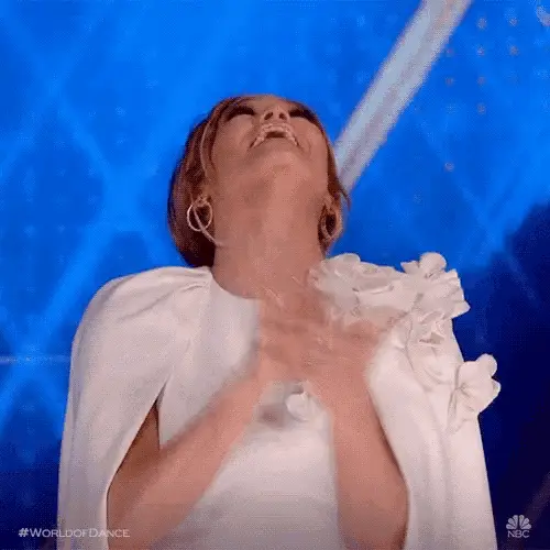 Claudipia excitedly exclaims 'Me Encantó Todo' (I Loved Everything) in front of a white shelf.