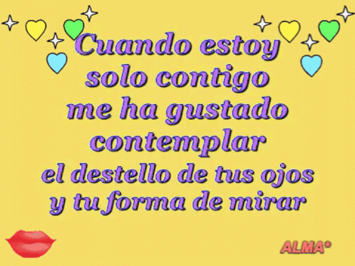 A romantic message about liking red lips, a gaze, and a way of loving, set against a yellow background with hearts.