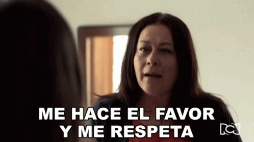 Elvira, played by Alina Lozano, sternly demands respect: 'Me hace el favor y me respeta.'