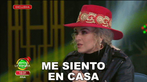 Aracely Arámbula, wearing a red hat, expresses 'Me Siento En Casa' (I Feel At Home) on Venga La Alegría.